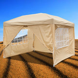 10 x 10 ft Pop up Canopy Tent with 2 Doors & 2 Windows Khaki