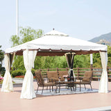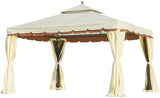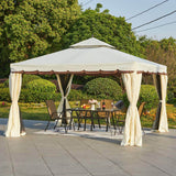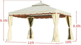 10’ x 12’ Gazebo Canopy Double Roof Patio Gazebo Steel Frame with Netting and Shade Curtains, Cream