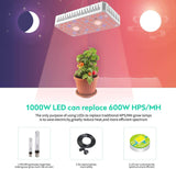 1000W LED Plant Grow Lights for Indoor Plants Full Spectrum Dual-Chip with Daisy Chain & Thermometer Humidity Monitor