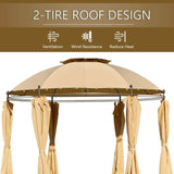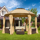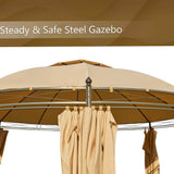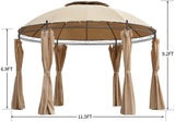 11.5ft Outdoor Patio Softtop Gazebo Steel Frame Round Gazebo Canopy Anti-UV Dome with Ground Stake & Removable Curtains, Beige
