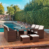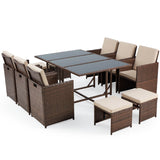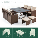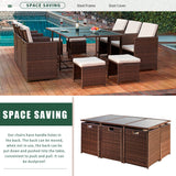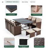 11 Pcs Patio Dining Set Space Saving Rattan Outdoor Sectional Furniture w/ Ottoman, Cushion & Dust Cover