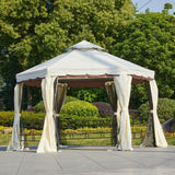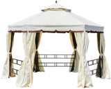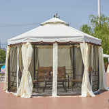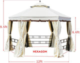 12FT Gazebo Canopy Hexagonal Double Roof Patio Gazebo Steel Frame Pavilion with Netting and Shade Curtains, Cream