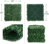 12PCS 20"x20" Artificial Boxwood Panels Topiary Hedge Plant, Privacy Screen Artificial Greenery Home Decor Artificial Plants