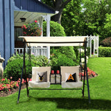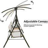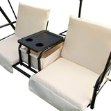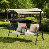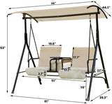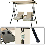 2 Person Patio Porch Swing Outdoor Swing Chair with Adjustable Tilt Canopy, Table and Storage Console, Beige