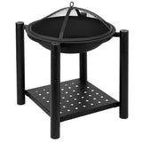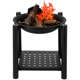 22'' Portable Outdoor Fire Pit Bowl with Shelf, Iron Brazier Wood Burning Patio & Backyard Firepit