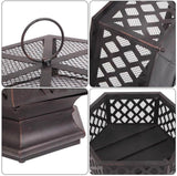 22'' Outdoor Fire Pit with Mesh Screen, Metal Wood Burning Bonfire Firepit