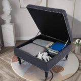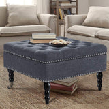 29" Square Tufted Button Storage Ottoman Table Bench with Rolling Wheels Nailhead Trim Linen Fabric Foot Rest Stool/Seat for Bedroom, living Room and Hallway (Gray)