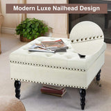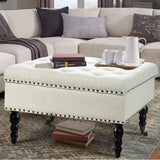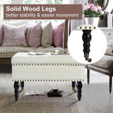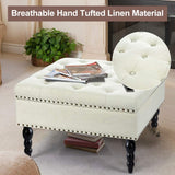 29" Square Tufted Button Storage Ottoman Table Bench with Rolling Wheels Nailhead Trim Linen Fabric Foot Rest Stool/Seat for Bedroom, living Room and Hallway (Beige)