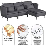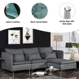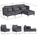 Convertible 3-Seat Sectional Sofa L-Shaped Couch Dark Gray