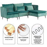 Convertible 3-Seat Sectional Sofa L-Shaped Couch Green