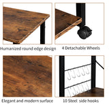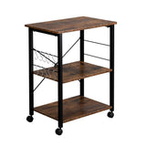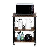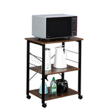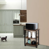 3-Tier Kitchen Utility Microwave Oven Stand Vintage Board Top Black Metal Frame