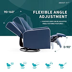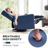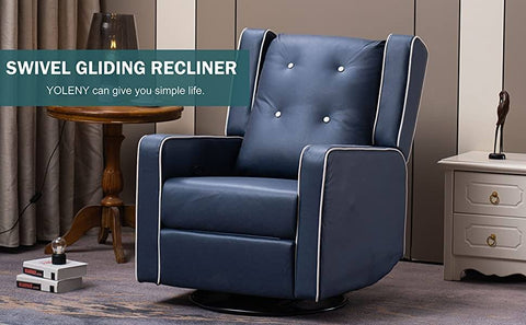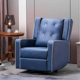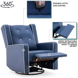 360-Degree Swivel Gliding Recliner,Leathaire Upholstered Recliner Blue