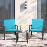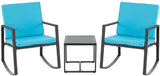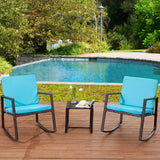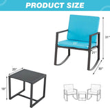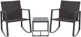 3 Pcs Patio Rocking Bistro Set Wicker Porch Chairs Outdoor Furniture Conversation Set w/ Coffee Table