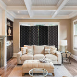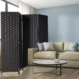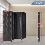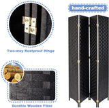 4 Panels Room Divider, 6 FT Tall Weave Fiber Room Divider, Double Hinged, Folding Privacy Screens, Freestanding Room Dividers, Black
