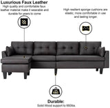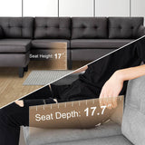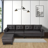 4-Seat Sectional Sofa Convertible Couch Black Reversible L-Shape Couch for Living Room, Living Room Furniture Sets with Chaise Lounge for (Black Coffee)