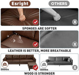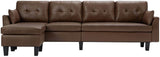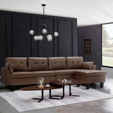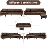 4-Seat Sectional Sofa Convertible Couch Brown Faux Leather Reversible L-Shape Couch for Living Room, Living Room Furniture Sets with Chaise Lounge for Apartment