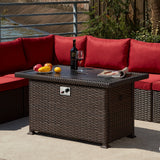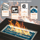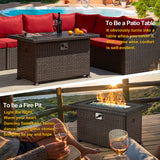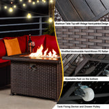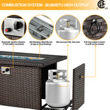 44" Outdoor Propane Gas Fire Pit Table 50000 BTU Auto-Ignition w/ Windguard, Aluminium Tabletop, Brown