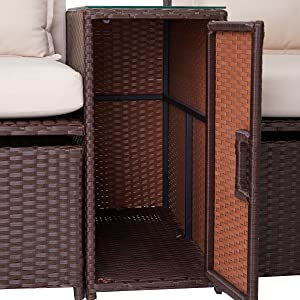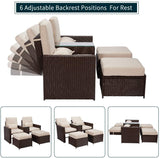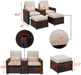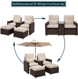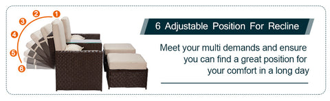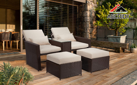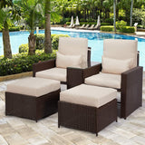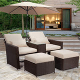 5 Pcs Outdoor Furniture Sets PE Wicker Rattan Chair Recliner with Ottoman and Table