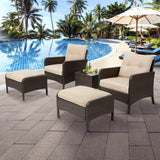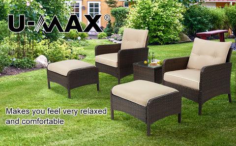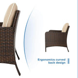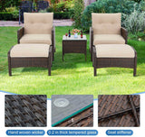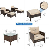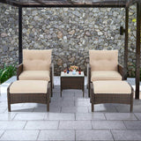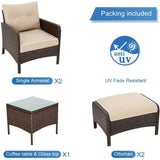 5 Pcs Patio Furniture Set, Brown PE Wicker Rattan Conversation Lounge Set with Ottoman, White & Tan Cushion