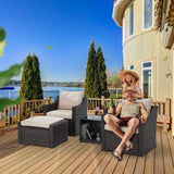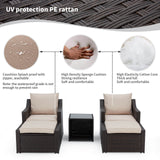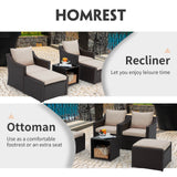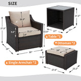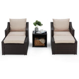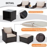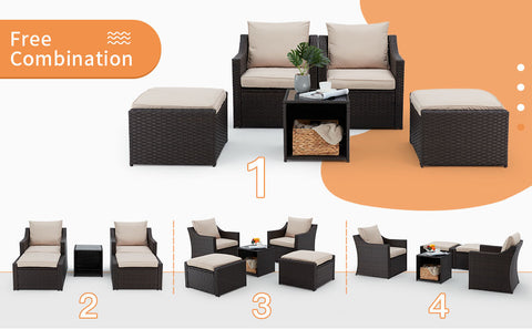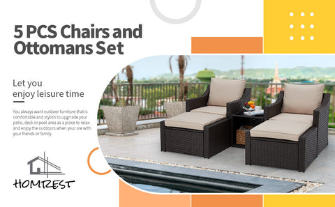 5 Piece Outdoor Patio Furniture Conversation Set with Ottoman, Khaki