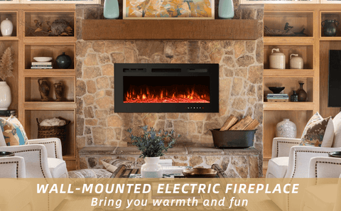 50 inch Electric Fireplace with Free Standing, Wall Mounted Insert Heater Remote Control