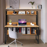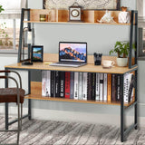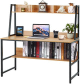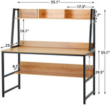 55'' Computer Desk Table Workstation Desk with Hutch & Bookshelf, Walnut