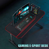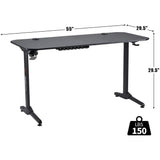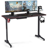 55inch Gaming Desk, T Shaped Computer Desk, Office Desk with Cup Holder & Headphone Hook,Professional Home Office Writing Desk with USB Gaming Handle Rack & Full Desk Mouse Pad