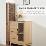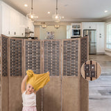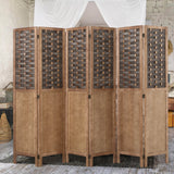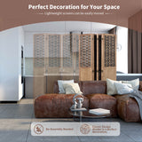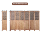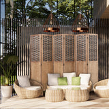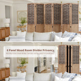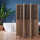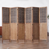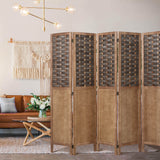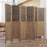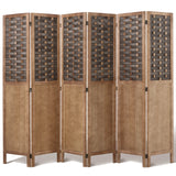 6 Panels Folding Room Divider 5.6ft Wood Privacy Screens with Hand-Woven Wicker Rattan, Brown