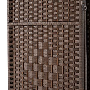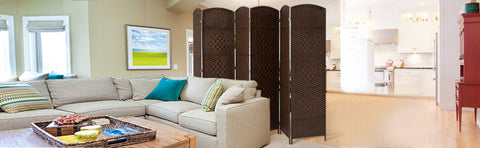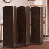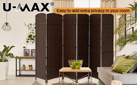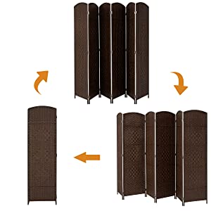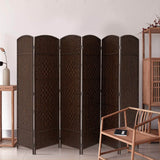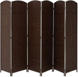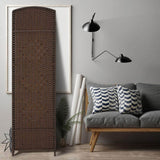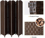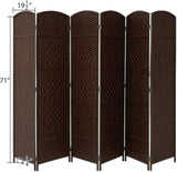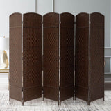 6 Panels Room Divider, 6 FT Tall Weave Fiber Room Divider, Double Hinged,Folding Privacy Screens, Freestanding Room Dividers, Coffee