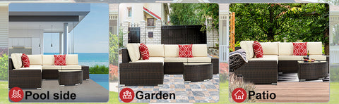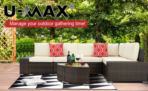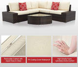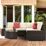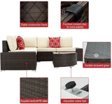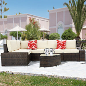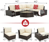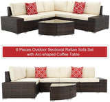 6 Pcs Outdoor Sectional Furniture Set, Patio PE Rattan All Weather Wicker Sofa Set with Cushions Arc-Shaped Table, Brown