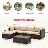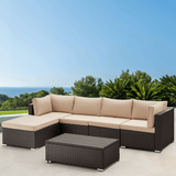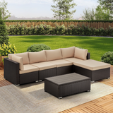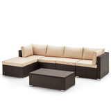 6 Pcs Outdoor Rattan Sectional Sofa All Weather Patio Furniture Set w/ Beige Cushion & Coffee Table