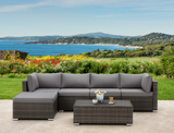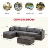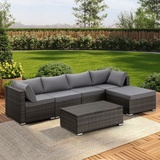 6 Pcs Outdoor Rattan Sectional Sofa All Weather Patio Furniture Set w/ Gray Cushion & Coffee Table