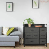 7 Drawer Dresser Organizer Fabric Storage with Steel Frame, Wood Top and Handle