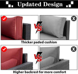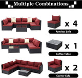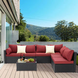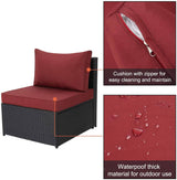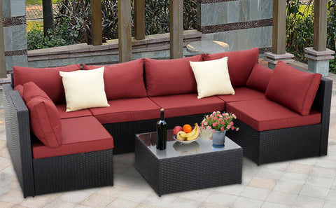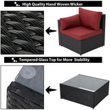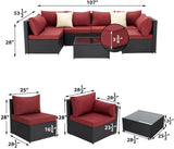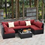7-Piece Wicker Outdoor Patio Sectional Furniture Set Rattan Patio Conversation Furniture Sets Wicker Sofa Set with Red Cushion