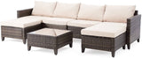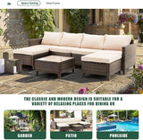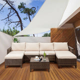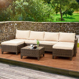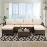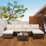 7 Pcs Outdoor Sectional Sofa Rattan Patio Conversation Set w/ 2 Ottomans, Coffee Table, Cushions