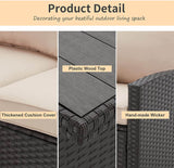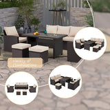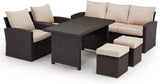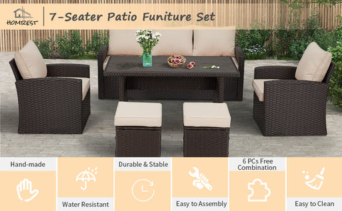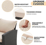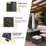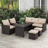 6 Pcs Patio Dining Sofa Set, All Weather Wicker Rattan Dining Set with Ottoman, Beige