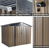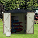 8' x 6' Outdoor Metal Storage Shed, Steel Garden Backyard Sheds with Double Door & Lock, Utility Tool Storage, Gray and Black