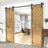 8FT Double Barn Door Hardware J Shape Carbon Steel Bi-parting System 96inch