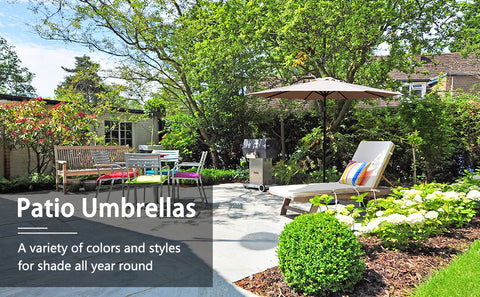 9ft Patio Umbrella Market Umbrellas Large Outdoor Umbrella with Push Button Tilt and Crank, Red