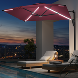 AECOJOY 10 ft Wall Mounted Patio Umbrella with Solar LED Lights Outdoor Rectangle Umbrella with 180° Rotation for Outside in Red