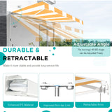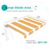 AECOJOY 13' x 10' Manual Retractable Patio Awning,Outdoor Awning Retractable Sunshade Shelter in Yellow Stripes