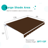 AECOJOY 13' x 8' Manual Retractable Patio Awning,Outdoor Awning Retractable Sunshade Shelter-Brown
