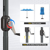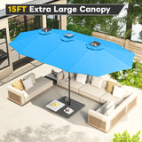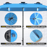 AECOJOY 15ft Patio Umbrella with Solar Lights,Outdoor Large Double Umbrella, Rectangle Table Umbrella with 156 PCS LED Lights and Crank Handle for Backyard Deck Pool Shade in Blue
