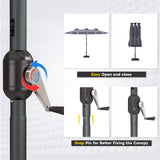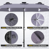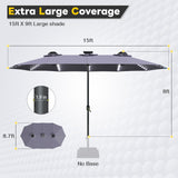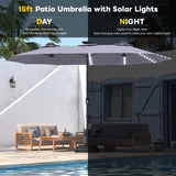 AECOJOY 15ft Patio Umbrella with Solar Lights,Outdoor Large Double Umbrella, Rectangle Table Umbrella with 156 PCS LED Lights and Crank Handle for Backyard Deck Pool Shade in Brown