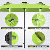 AECOJOY 15ft Patio Umbrella with Solar Lights,Outdoor Large Double Umbrella, Rectangle Table Umbrella with 156 PCS LED Lights and Crank Handle for Backyard Deck Pool Shade in Green