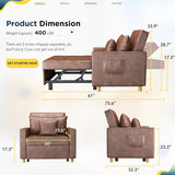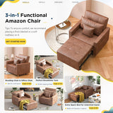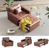 AECOJOY 3-in-1 Convertible Chair Bed Sleeper & Futon Sofa Bed Chair with Adjustable Backrest and 2 Pillows-Saddle Brown