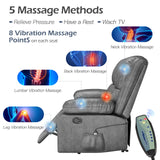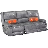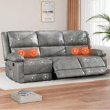 AECOJOY 3 Seat Leather Recliner Sofa with Massage Heated Function, Home Theater Seating Chair in Gray