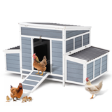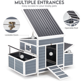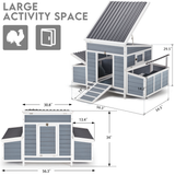 AECOJOY 56" Large Chicken Coop with 6 Nesting Boxes Outdoor Hen Chicken House w/Ramps, Removable Tray for 6 Chickens,Gray
