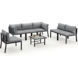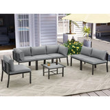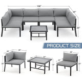 AECOJOY 7-Piece Metal Mesh Outdoor Furniture Set with Cushions and Waterproof Cover, Wooden Table, Ideal for Garden, Backyard, Balcony, & Lawn (Grey)