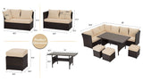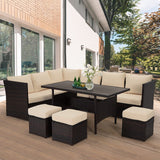 AECOJOY 7 Piece Patio Furniture Set PE Rattan Outdoor Dining Set Sectional Sofa Couch with Table Patio Conversation Set in Beige